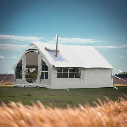 Lufttält uppblåsbar camping, uppblåsbart tält 6–8 personer, familjetält glamping tält, snabbmonterad, 4 säsonger Uppblåsbart campingtält, uppblåsbart hustält (Gray, 385x260x200cm)