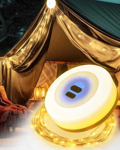 BrightArk Camping Sladdlampa 2-i-1 Utomhus Vattentät Bärbar Hopvikbar Sladdbelysning med 7 Belysningslägen, 10m USB-uppladdningsbar Tältlampa för Trädgård, Husvagn, Camping
