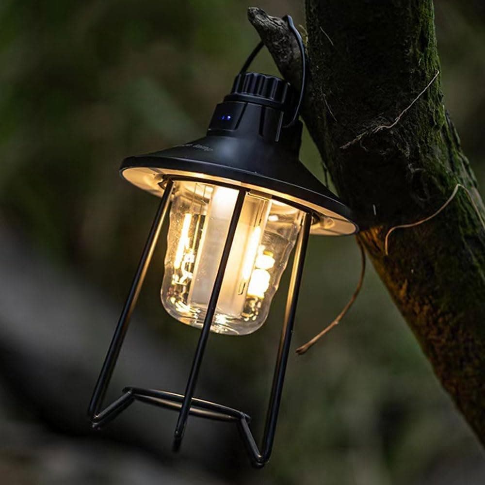 Uppladdningsbar LED Campinglampa USB 300lm Retro Lykta IP65 - Tältlampa för Utomhus och Hem