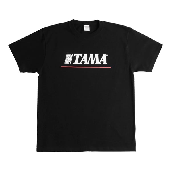 TAMA Logo T-Shirt Black W/Red Line S Size T-shirt, svart, unisex vuxen, svart, S