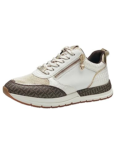 Tamaris dam låga sneakers, dam halvskor, utbytbar fotbädd, komfort foder, Benvit kam, 37 EU