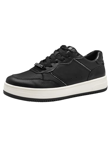 Tamaris dam låga sneakers, dam halvskor, utbytbar fotbädd, svart, 42 EU