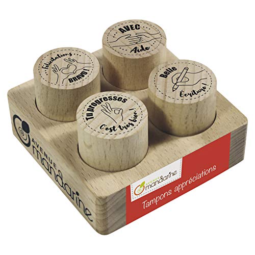 Avenue Mandarine CO213C - Un lot de 4 tampons appréciations (Félicitations, Avec aide, Tu progresses et Belle écriture) Textes 2