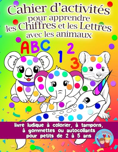 Cahier d'activités pour apprendre les Chiffres et les Lettres avec les Animaux: Livre ludique à colorier, à tampons, à gommettes ou autocollants pour petits de 2 à 5 ans