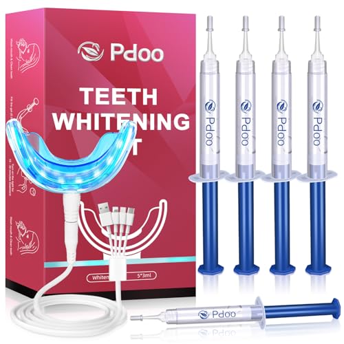 Pdoo tandblekningsset med LED-ljus för känsliga tänder, snabba resultat för tandblekning hemma, tandblekning gel hjälper till att ta bort alla typer av fläckar