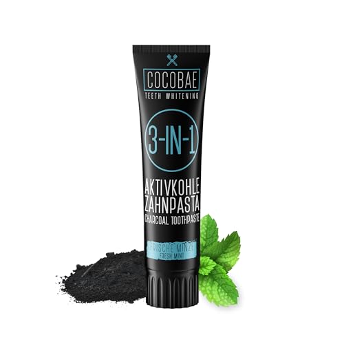 COCOCOBAE 3-IN-1 aktivt kol tandkräm – tandblekning och naturlig tandvård, kariesskydd – för vita tänder och missfärgning