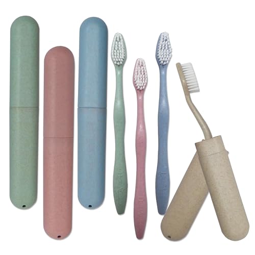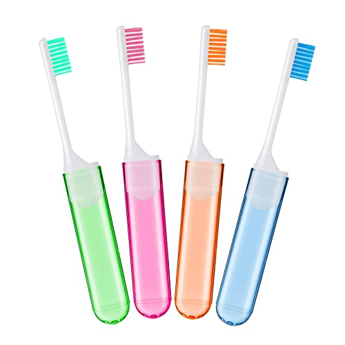 WLLHYF 4 st bulk hopfällbar tandborste resetandborste kit bärbar mjuk bekväm borst skyddar tandköttet tandborste med tandborstfodral för vuxna barn resor camping vandring