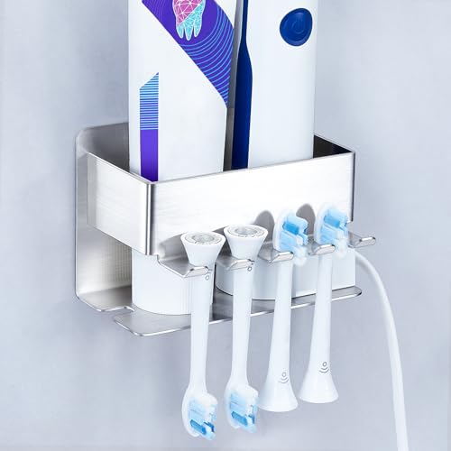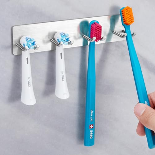 WAYASI Elektrisk Tandborste Hållare, Utan Borrning, Självhäftande Tandborsthållare, 5 Tandborsthuvuden för Familj Badrum, SUS304 Rostfritt Stål Vägg Andborsthållare
