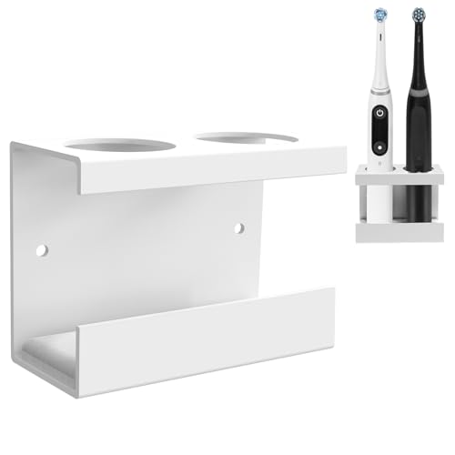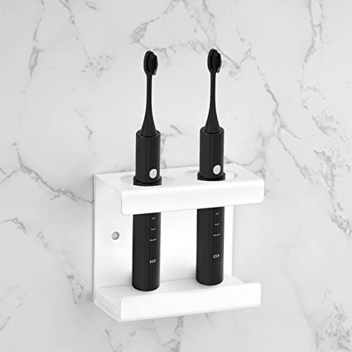 Linkidea Väggmonterad elektrisk tandborsthållare för badrum, dusch, 2 spår aluminiumlegering power tandborsthängare, självhäftande väggmonterad tandborste organisatör kompatibel med 7 am2 m (vit)