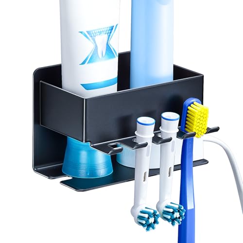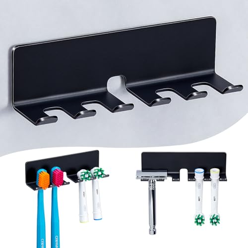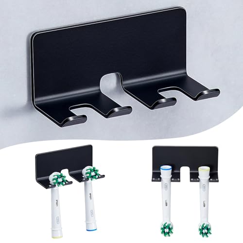 Linkidea Väggmonterad elektrisk tandborsthållare för badrum, aluminium självhäftande tandborste organiseringshängare kompatibel med Oral-B iO-serien, Philips Sonicare, 7AM2M, Aquasonic (svart)