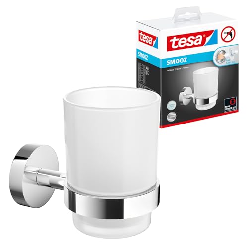 tesa Smooz tandborsthållare, högblank förkromad metall, självhäftande, 113 mm x 79 mm x 124 mm