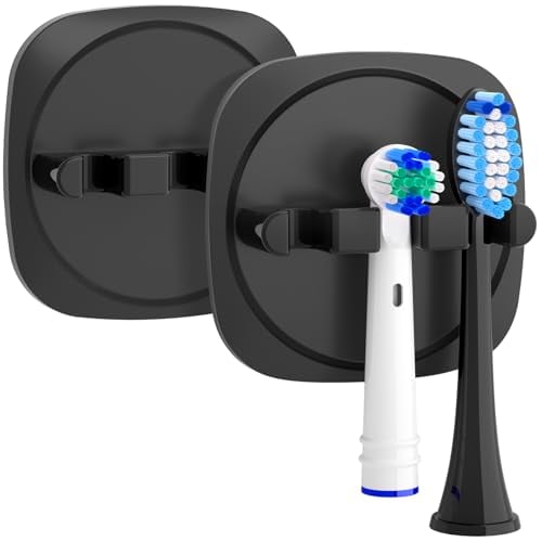 FIXCHORD Tandborsthållare, Elektrisk tandborsthållare 2st, Väggmonterad elektrisk tandborsthållare med 3M starkt klistermärke, självhäftande tandborsthuvudhållare för badrum, Svart