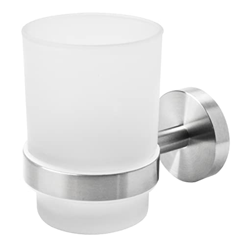 Joejis Tandborstkopp för badrum, tandborsthållare i rostfritt stål, väggborsthållare, vägghållare, självhäftande eller skruvhållare för tandborste, bättre än glasdörr sugkopp