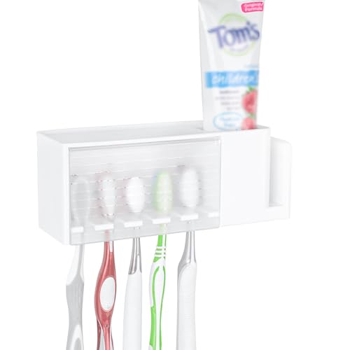 Linkidea multifunktionell självhäftande tandborsthållare, väggmonterad tandborsthållare med lock, tandkräm Tandborste Organizer Box för badrum familjen sovsal (Vit)