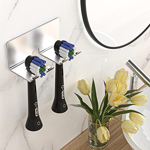 PARKMANI 2 st tandborsthållare för badrum, elektrisk tandborsthållare väggmonterad, vattentät självhäftande tandborste Caddy för familjen (borstat silver)