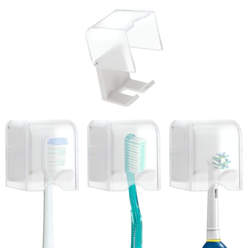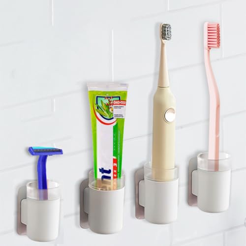 Cadbibe 4 st vit tandborsthållare, multifunktionshållare, vattentät självhäftande väggmonterad hållare, för badrum, kök, garage, tvättstuga