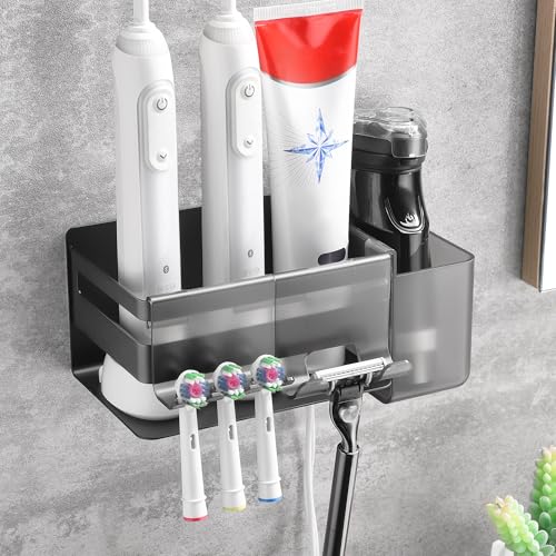 IQLER Tandborsthållare, elektrisk tandborsthållare, tandkrämshållare, rakbladhållare, med dräneringshål och laddningskabelhål, självhäftande fastsättning, badrum, kök, kontor (4)