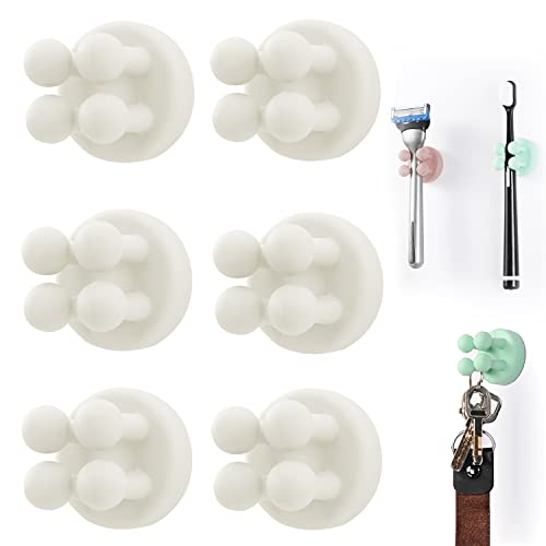 Silikon tandborsthållare 6 st multifunktionell krok rakhyvel hållare vattentät självhäftande väggmonterad enkel krok för vägg eller glas för att hänga badrum kök vardagsrum kontor (vit)
