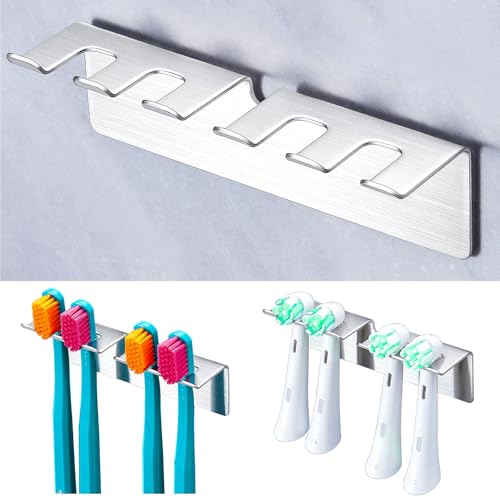 YYBO Vägg Tandborsthållare Elektrisk tandborsthållare Rostfritt stål SUS304 Fästbar Borsthållare, Handdukskrok Väggkrok Självhäftande för Badrum