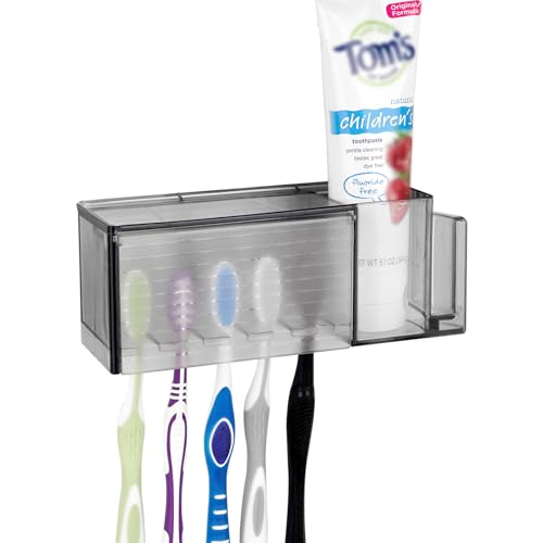 Linkidea multifunktionell självhäftande tandborsthållare, väggmonterad tandborsthållare med lock, tandkräm Tandborste Organizer Box för badrum familjen sovsal (Grå)