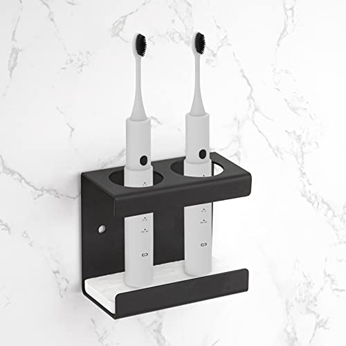 Linkidea Väggmonterad elektrisk tandborsthållare för badrum, dusch, aluminiumlegering power tandborsthängare, självhäftande väggmonterad 2 fack tandborste organiserare (svart)