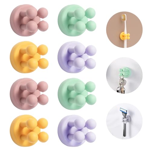 Tandborsthållare, 6 stycken roliga tandborsthållare silikon tandborsthållare vägg multifunktionskrokar utan borrning vattentät självhäftande badrum rakhållare dusch (8 stycken)