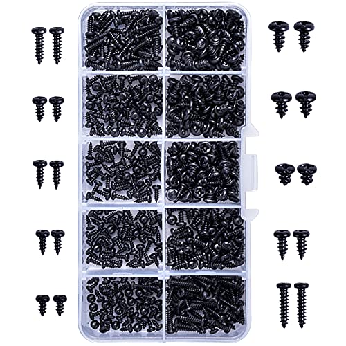 500 st svart självgängande skruvar, självgängande skruvar med cylindriskt huvud i kolstål, korsformade skruvar med plastlåda för trä mjuk metall M2.3 M2.6 M3 (10 storlek)