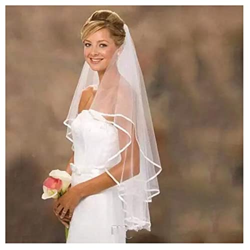 2 nivåer bröllopsslöja brud rosett band katedral huvud slöja brud mjuk tyll snitt kant fingertopp hårsmycke med kam för kvinnor brud möhippa (vit A)