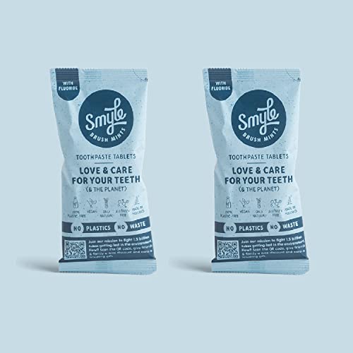 Smyle Zahnputztabletten mit Fluorid | 100% plastikfrei | vegan | ideal für unterwegs | Starter-Kit mit 125 Zahnpastatabletten | 2 Monate VorratSmyle tandkrämstabletter: dubbelförpackning (252 bitar)