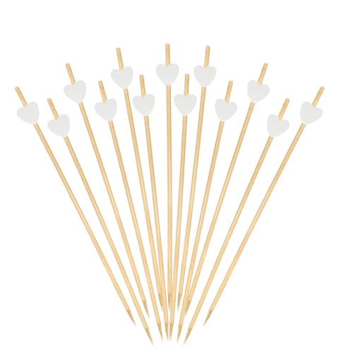 OOTSR 100 st bambu cocktail, 12 cm trä tropiska cocktail tandpetare för fest förrätt dryck martini matvaror födelsedagstårta fest mellanmål dekorativ – bambu hjärta bambupinne