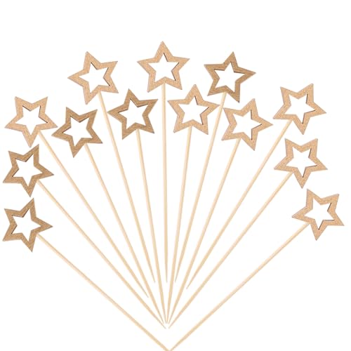 ENLACE Stjärna cocktailspett, 50 stycken träspett, fingermatspett, julcocktailplock, guldstjärna, partyspett, tandpetare, trä, fruktspett för grillmat, frukt, cupcake, cocktaildekoration