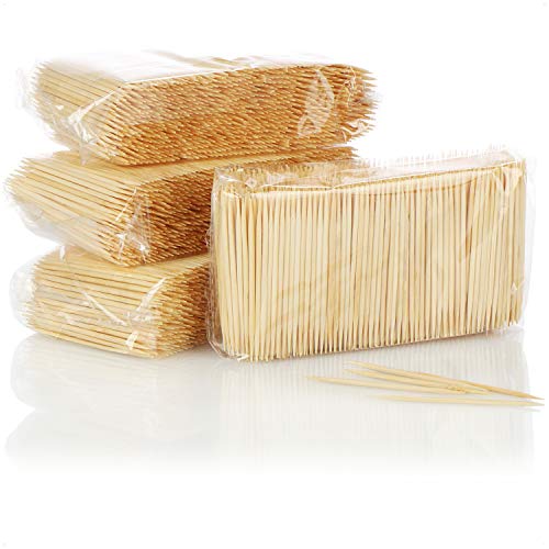 Bekvämt paket GUSTO [1 500 antal] Bambu tandpetare trä, runda dubbelspetsiga tandplockar trä – tandpetare för förrätt, frukt och tänder rengöring – tidigare