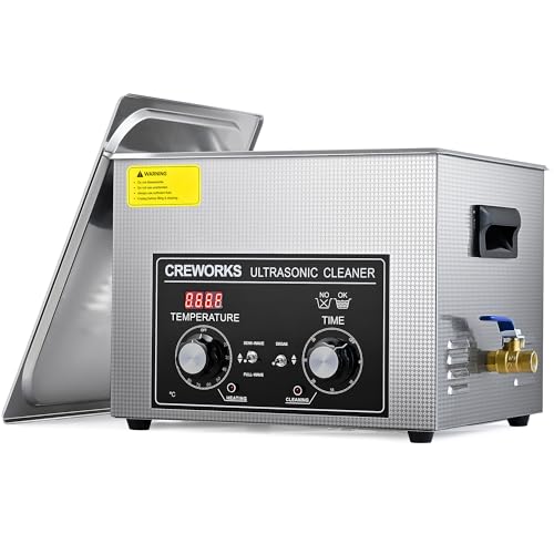 CREWORKS Ultraljudsrengöringsanordning rostfritt stål 15 l ultraljudsrengörare med uppvärmning timer degas- och mjukt läge för tandprotes smycken glasögon klockor glas ultraljudsrengörare med knappar