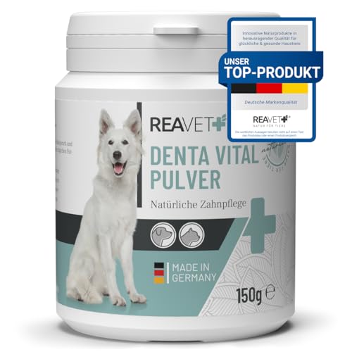 ReaVET DentaVital Tandvårdspulver för hund och katt 150 g - Naturlig tandstensborttagare, effektiv tandrengöring utan tandborste, medel mot tandsten och munlukt hos hund
