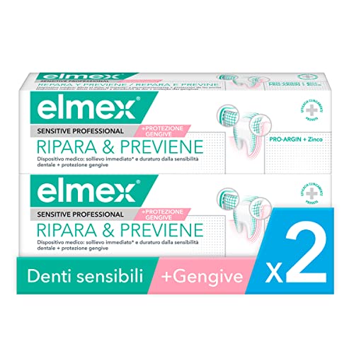 elmex tandkräm Sensitive Professional Repair & Prevent 2 x 75 ml – medicinsk tandrengöring för omedelbar*, långvarigt skydd – förhindrar tillbakadragande tandkött och ny smärta