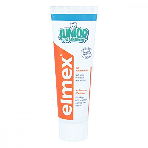 elmex tandkräm junior 6–12 år 4 x 75 ml – medicinsk tandrengöring med 1400 ppm fluor för mycket effektivt skydd av karies – stärker de nya, permanenta tänderna