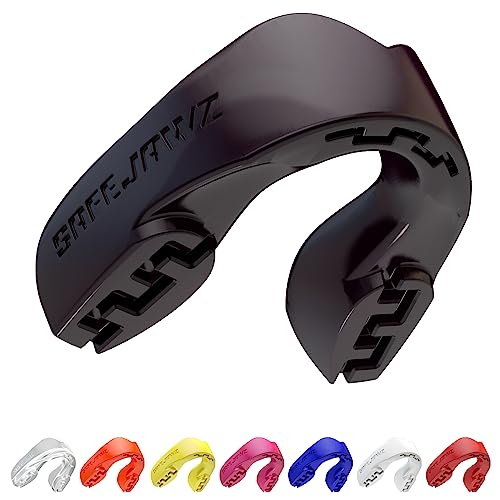 SAFEJAWZ Sport tandskydd vuxna och barn sport munskydd för alla helkontaktsporter inklusive rugby, MMA, kampsport, kickboxning, judo, hockey och lådor (Vuxna (12+ år), Black)