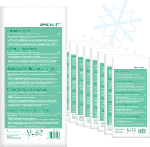 Lewis-Plast Premium Instant Ice Pack – engångs kylterapi ispaket, omedelbar smärtlindring för rygg, nacke, fotled, stukningar, huvudvärk och tandvärk (paket med 10)
