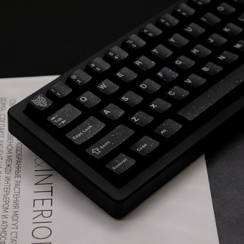 114 tangenter Doubleshot genomskinliga tangenter, glitter svarta tangenter, körsbärsprofil tangentbordsuppsättning för 60% 65% 75% mekaniskt tangentbord Cherry MX brytare