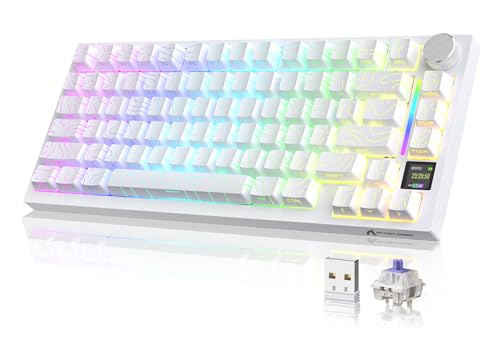 YINDIAO ATTACK SHARK X820 Ultra Gasket Mekaniskt Tangentbord med TFT-skärm och Vred, 75% ANSI-layout, 2,4 GHz/BT/Kabelansluten, 5 Ljudabsorberande Skum, Hot-Swap, för PC, MAC(Vit, Gåvobrytare)