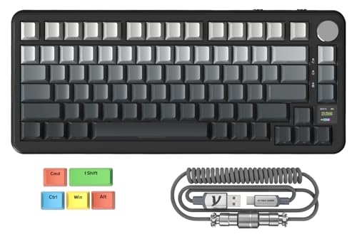 YINDIAO ATTACK SHARK X820 Ultra Gasket Mekaniskt Tangentbord med TFT-skärm och Vred, 75% ANSI-layout, 2,4 GHz/BT/Kabelansluten, 5 Ljudabsorberande Skum, Hot-Swap, för PC, MAC (Grå, Gåvobrytare)