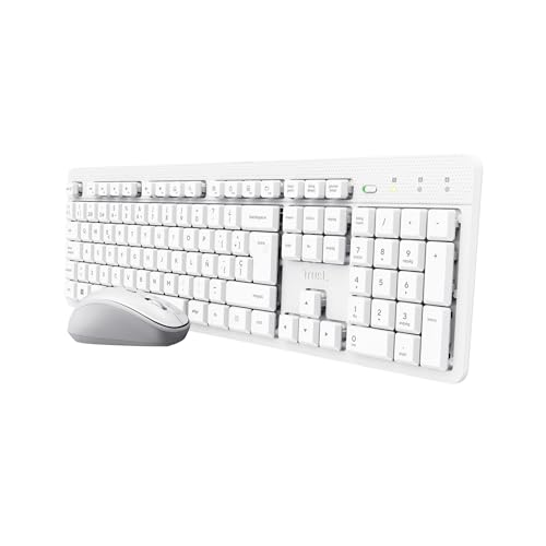 Trust ODY II Pack QWERTY trådlöst spanskt tangentbord och mus, tysta knappar, låg profil, en USB-mottagare, blekningsbeständig, Windows Mac PC bärbar dator, vit