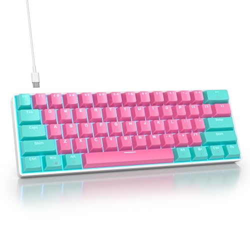 SOLIDEE 60% Mekaniskt Speltangentbord,61 Tangenter med Linjära Switchar,Trådbundet Mekaniskt Tangentbord med Isblå LED-bakgrundsbelysning,Ergonomiskt Tangentbord för PS5/PS4/Xbox Spelare(61 Miami)