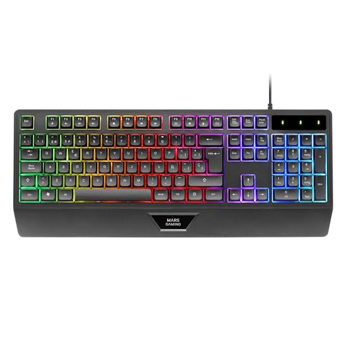 Mars Gaming MK124, ergonomiskt H-Mech-tangentbord, integrerat handledsstöd, FRGB regnbågsbelysning, anti-ghosting, PC tangentbord med full multiplattform, portugisiskt språk, svart