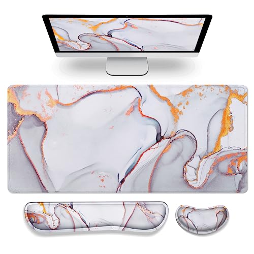 Gimars Uppgradera Tangentbord Handledsstöd, Ergonomiskt Minnesskum Mus Handledsstöd, Gel Armbågsstöd Tangentbordsstöd med Halkfri Bas för Kontorsspel, MAC, Dator, Marmor