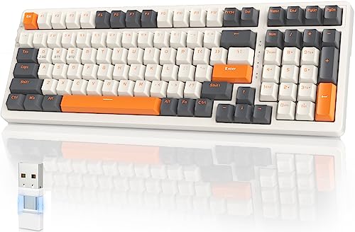 YINDIAO K96 Trådlöst Mekaniskt Tangentbord,Bluetooth/2.4Ghz Trådlös,Typ C/USB A 2-in-1 Mottagare,Hot Swap,100 Nycklar Kompakt 96% Layout Speltangentbord med Numpad,Röda Strömbrytare,för PC,Mac