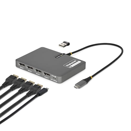StarTech. com USB-C till Quad-Monitor-adapter, 4K 60Hz DisplayPort, 140 W PD-genomströmning, USB för tangentbord/mus, TAA