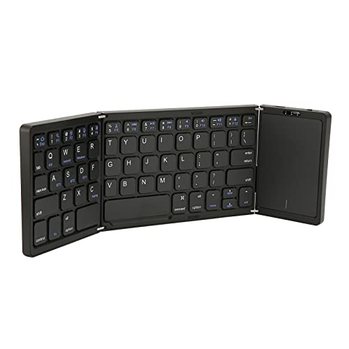 Hopfällbart Bluetooths-Tangentbord, Laddningsbart, Trippelfällbart Bärbart Trådlöst Tangentbord i Full Storlek med Pekplatta, Ultratunt Hopfällbart Tangentbord för Surfplatta (Svart)