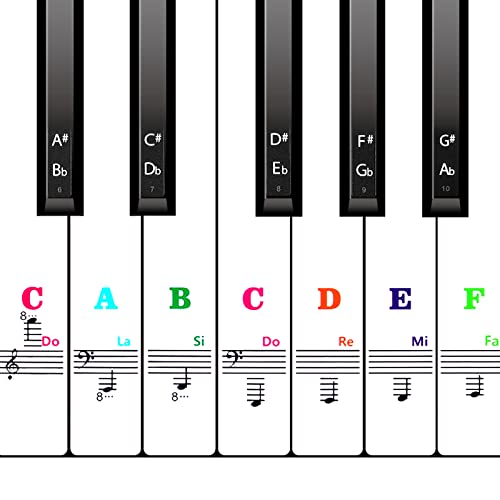 AIEX Piano Tangentbord Klistermärken för 88/61/54/49 Nyckel, Klistermärken Piano Anteckningar Avtagbara och Genomskinliga Pianoklaviaturbokstäver för Nybörjare Barn (Färgglada)