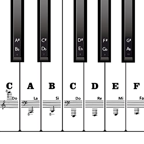 QMG Piano och tangentbord musik not, komplett set med klistermärken för vita och svarta tangenter; genomskinliga och borttagbara, för enkla pianolektioner